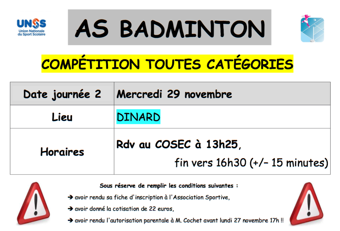 AS Badminton : compétition du 29 nov