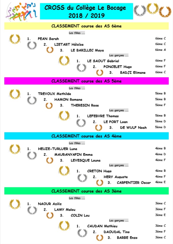 PALMARÈS COMPLET DU CROSS DU COLLÈGE