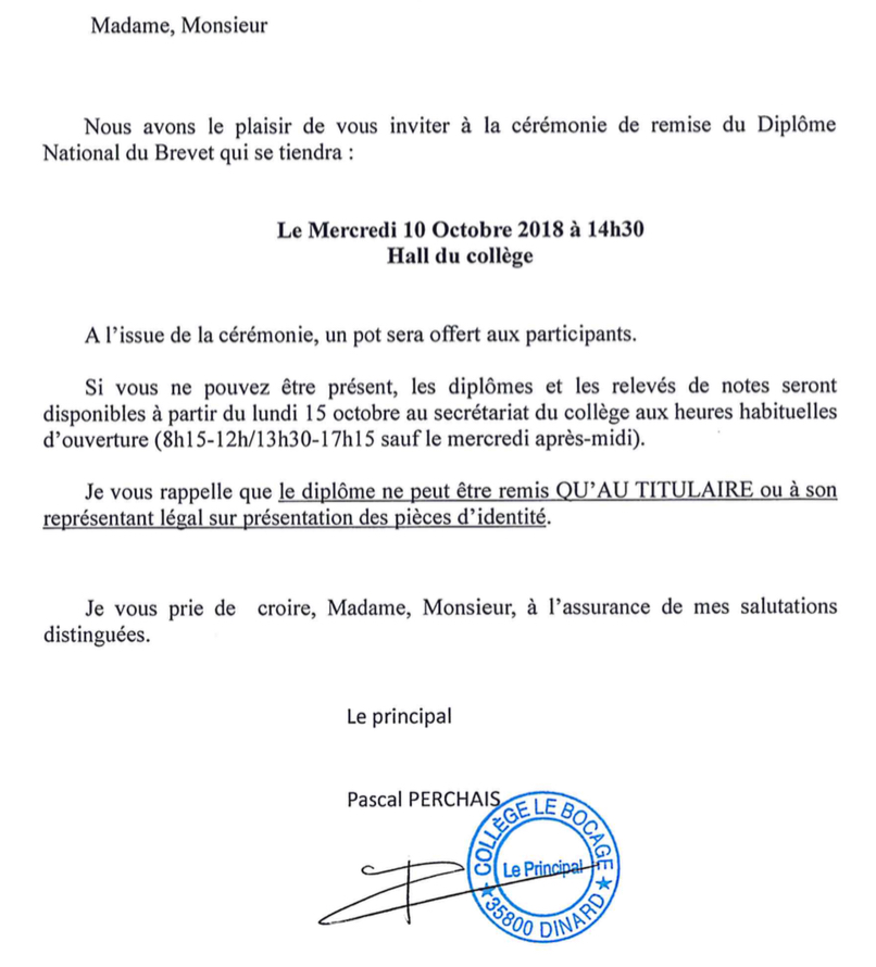 REMISE DES DIPLÔMES DU D.N.B 2018