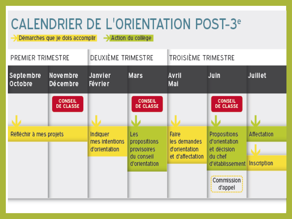 Calendrier de l’orientation |