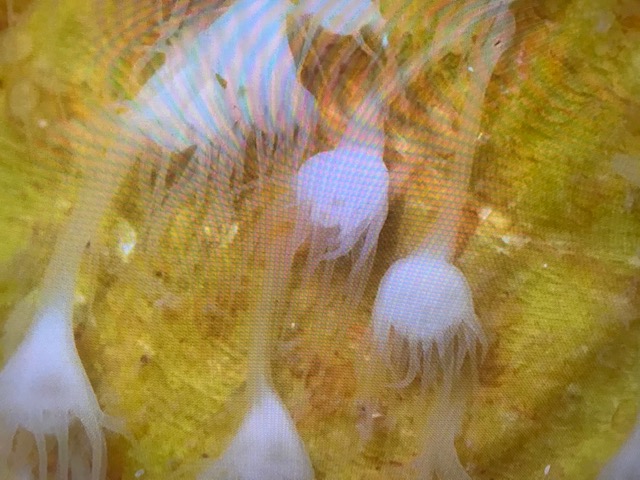 Pavillon Bretagne : les polypes de méduses sur une coquille St Jacques |