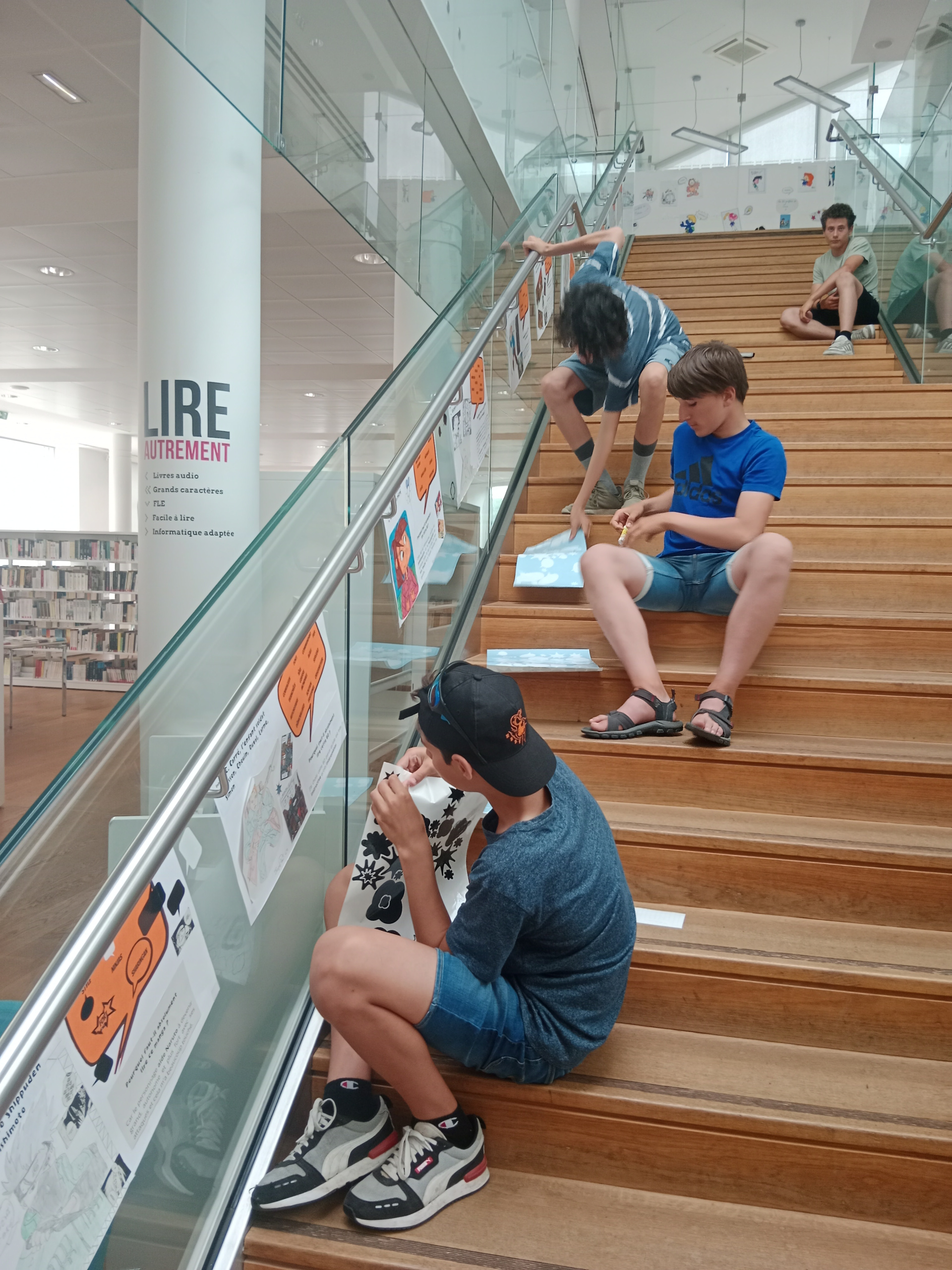 Vous pouvez voir l’exposition de Matthieu Bonhomme et celle des élèves durant tout l’été à la médiathèque.