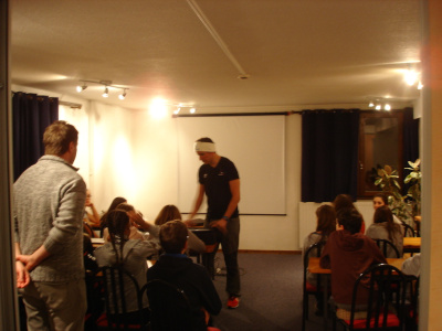 20h30 : activités du soir. Jeux de société, film et aussi parcours de vie : Samir participe bientôt au J.O d’hiver en février et présente son parcours atypique aux élèves. Ce soir TLS (Tout le Sport de France2) vient suivre son intervention et interviewer Samir mais aussi les élèves du Bocage !